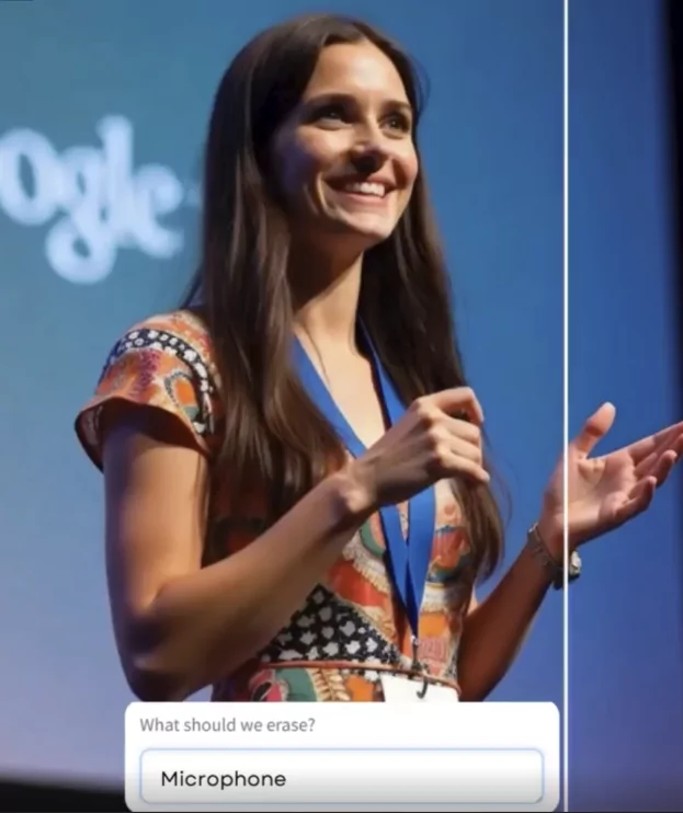 - La retouche photo et le détourage avancent aussi à grand pas. On parle de « text to erase » : on efface un élément du visuel via une commande texte. Finegrain est un nom à suivre et qui revient beaucoup depuis deux semaines. Cocorico, ils sont français.